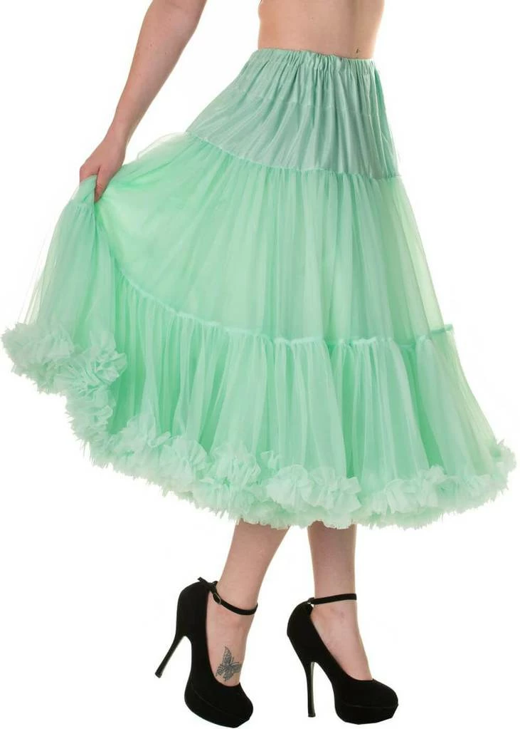 These extraordinarily fluffy petticoats consist of 2 layers of soft 2-row chiffon with both a cheerfully ruffled edge for even more added volume. Underneath is a shorter underskirt, so they don’t stick to your tights.