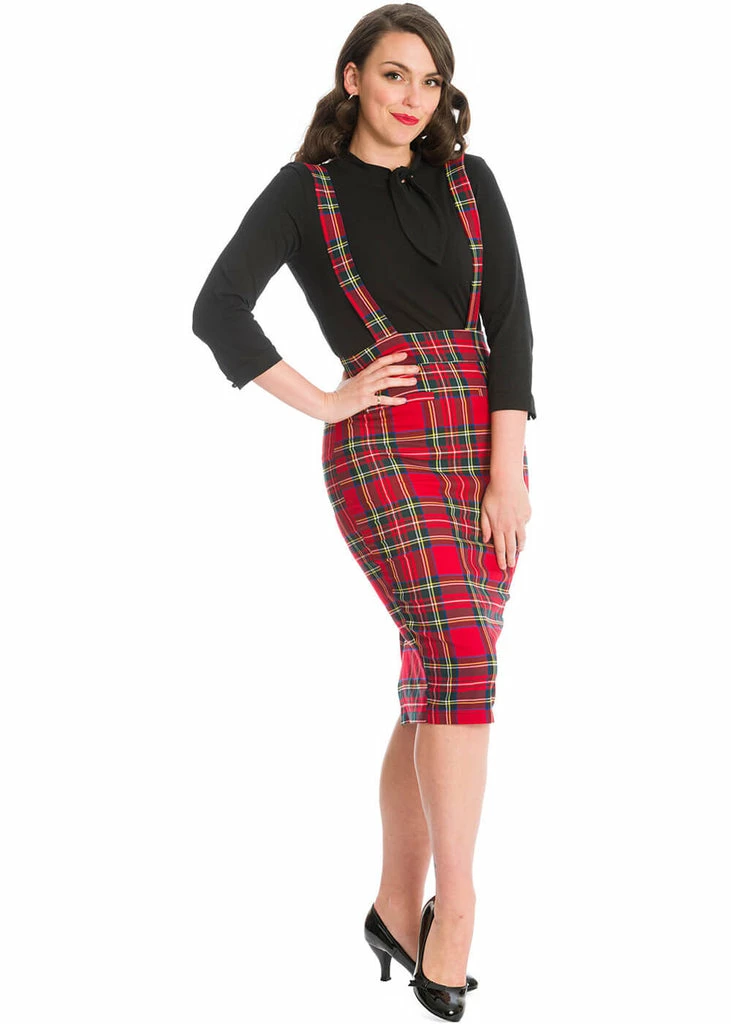 The stylish tartan is slightly stretchy, perfect for those killer curves! The shoulder straps are adjustable in the back and she has a non-removable underskirt.