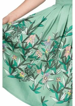 Oriental Tiger is an extraordinary look, because she has no line tracing the stripes, whoa… This cutie has a classic 50s line and from the waist down she flares out, through flat pleats, into a playful skirt with pockets. To give those tigers some space you can wear her with one of our petticoats!