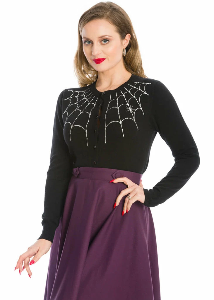 Banned Under Her Spider Web 50’s Cardigan Black White