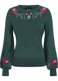 How elegant the are, her embroidered flowers on the front an the puffy long sleeves… This gem is made of a mix with knitted viscose, which gives her slight stretch and makes her feel incredibly soft. The lower seam and the ends of the sleeves are ribbed for a nice fit and to keep the warmth in. She is long enough to wear her with trousers, but also very flirty on top of a high waist model.