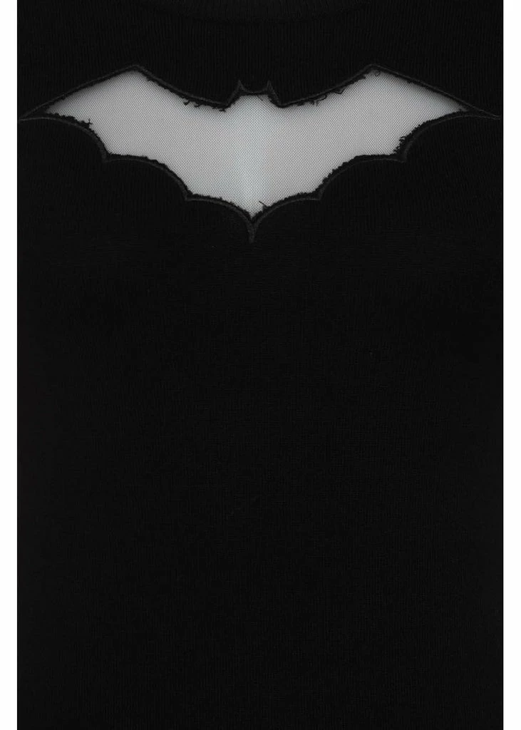 This playful wink towards their spooky collecties feels lovely to wear with her knitted viscose-mix with stretch making you want to wear her all year round. The bat is embroidered and the ribbed edges around the sleeves and bottom ensure a beautiful fit.