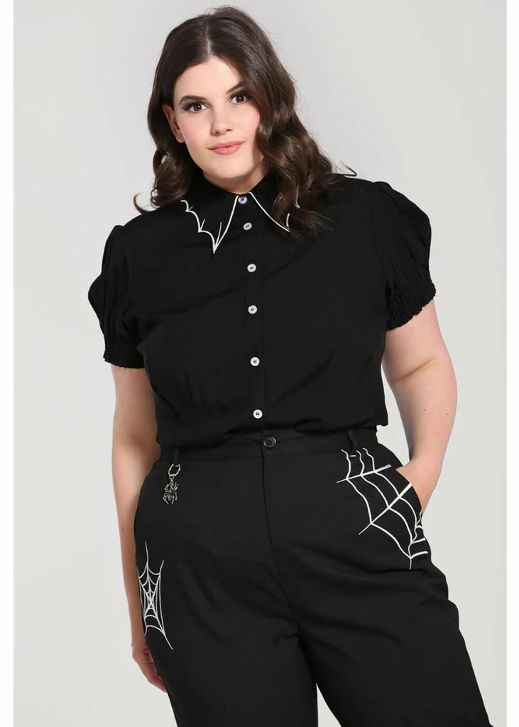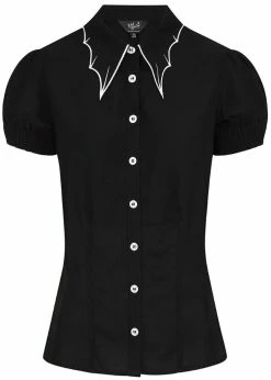 Hell Bunny Drusilla Bat 40’s Blouse Black White