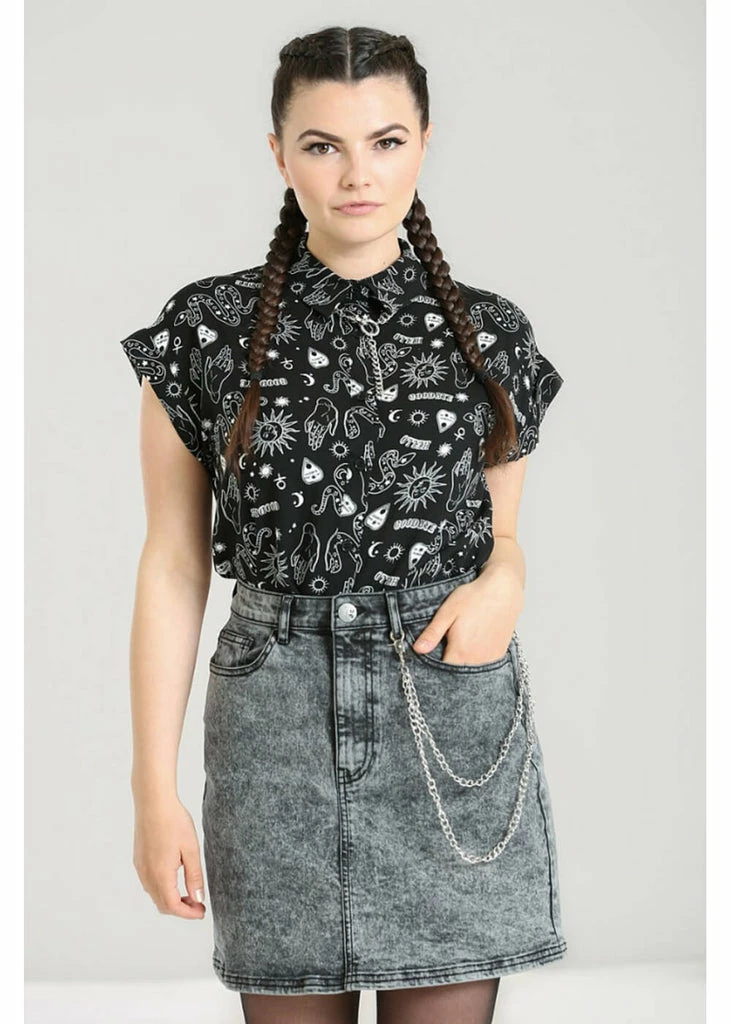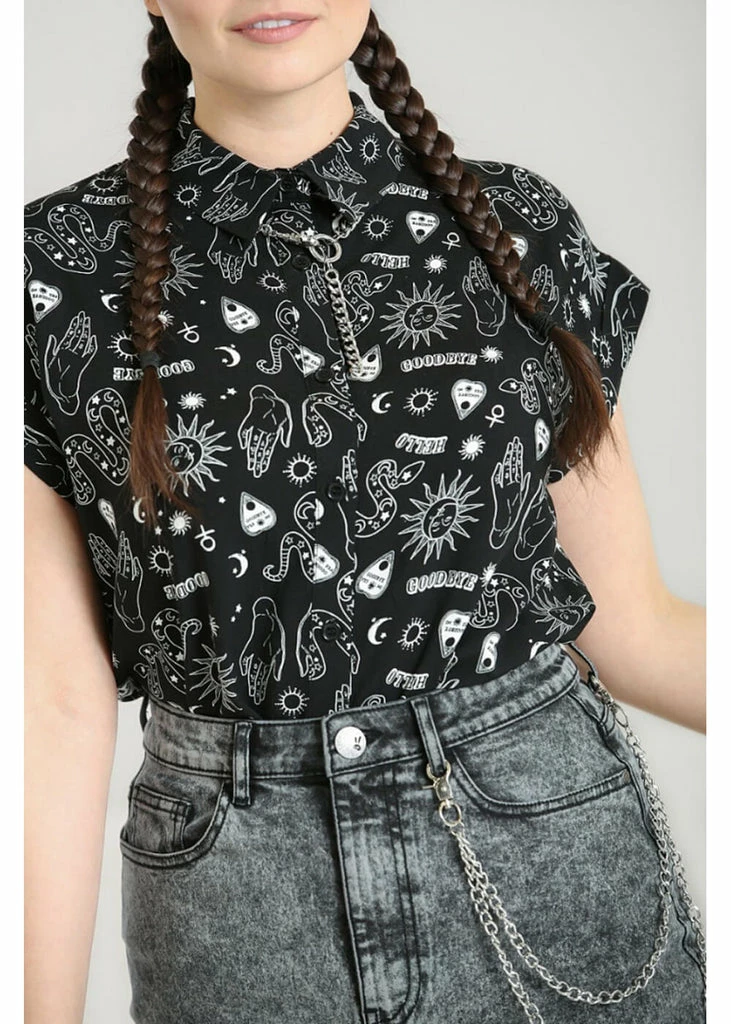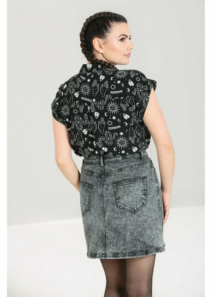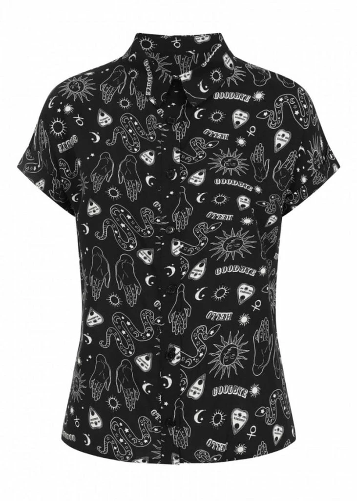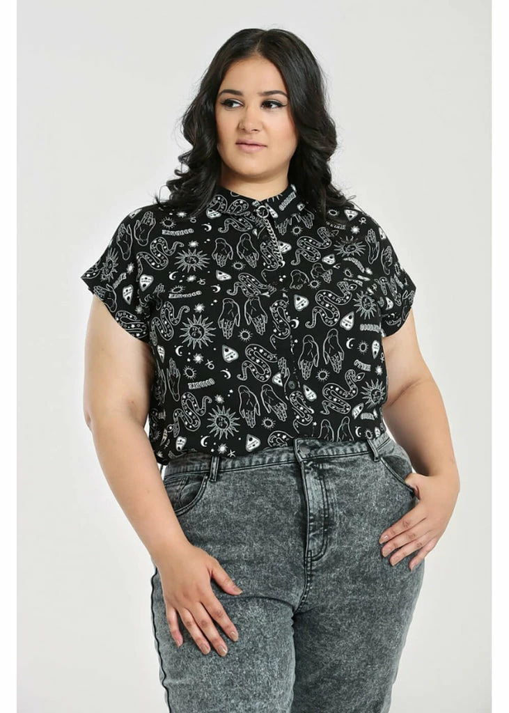 From the office right on to the seance, no problem with this cutie. She has rolled-up sleeves and is a relaxed fit, that shapes nicely thanks to her seams and closes with smooth buttons. Her breathable viscose has no stretch and looks fantastic with your favourite skirt, but is just as great with some cool jeans.