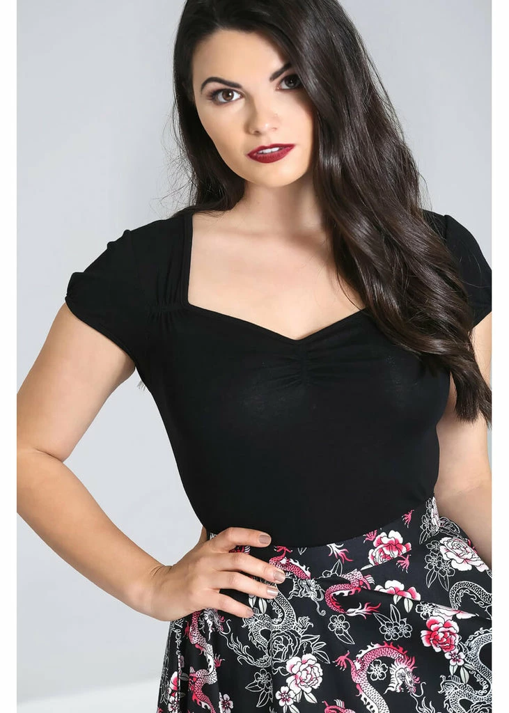 The pleated details on the chest add a neckline you simply can’t ignore 😉 She’s made of a beautiful quality cotton-mix with a lovely stretch and reaches down to the hips, so you never have to think about what to wear with all those gorgeous skirts.