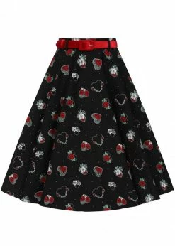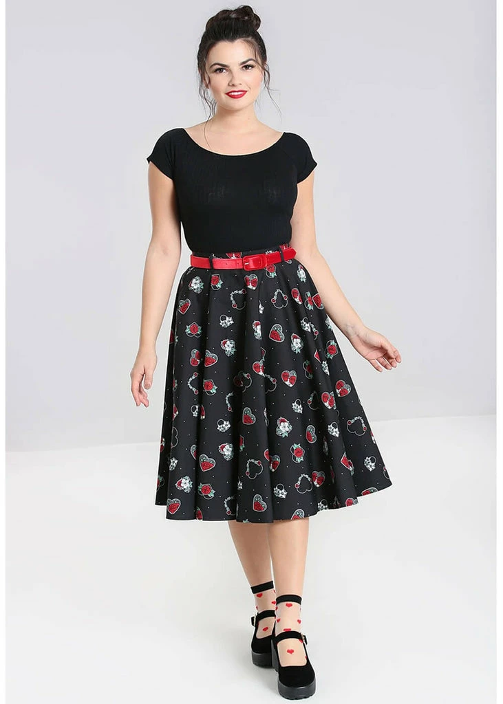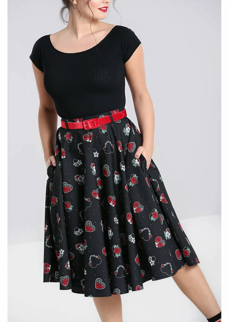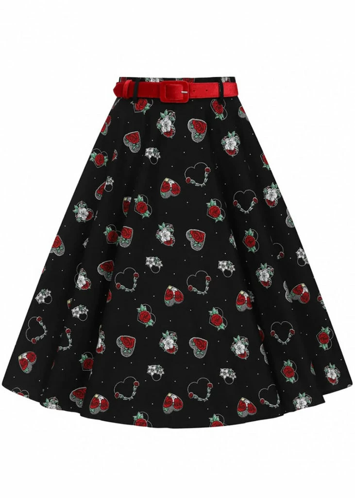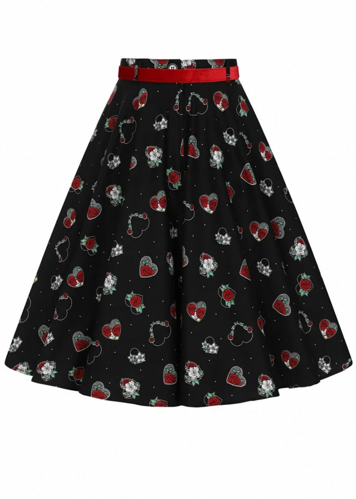 This beauty is made of lightweight cotton without stretch, for that perfect 50’s silhouette, and she flares so much, the hearts almost seem to fly off when you swing!