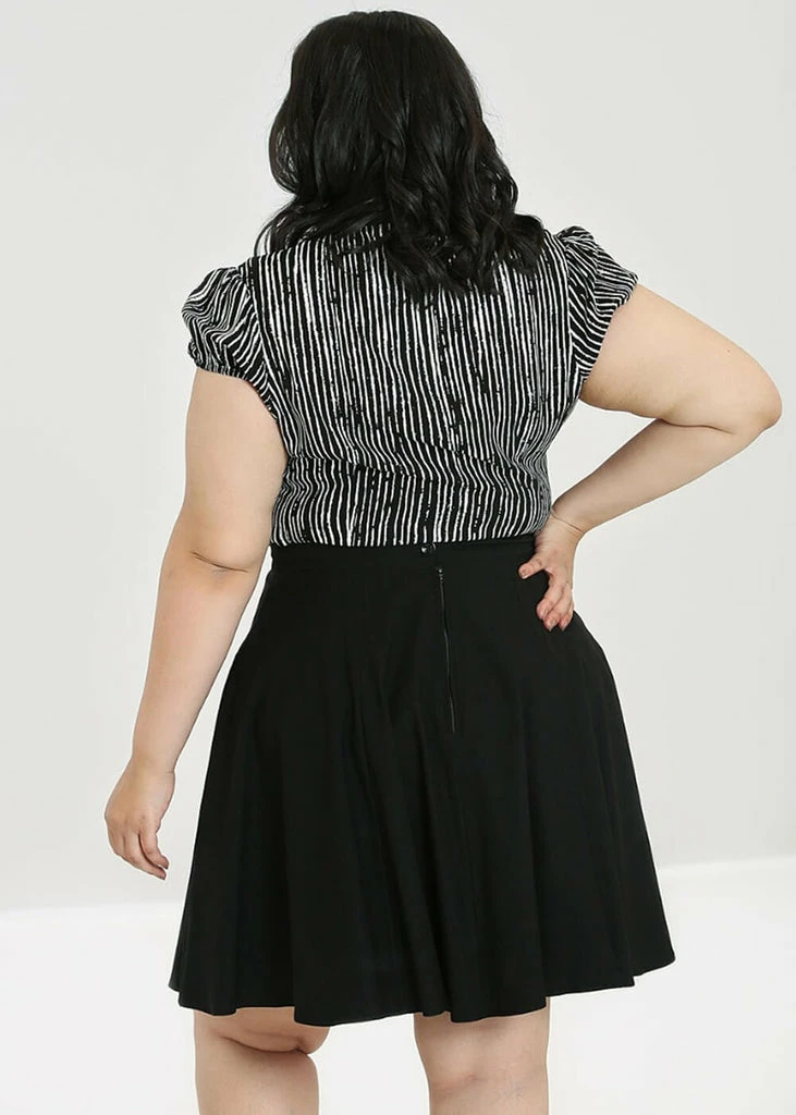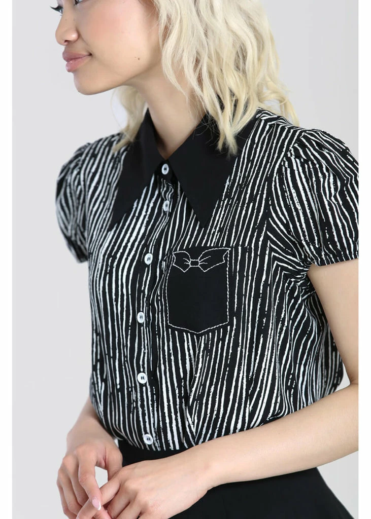 This beauty is relaxed model which shapes gorgeously thanks to her seams and closes with smooth buttons. Her short sleeves puff up playfully and this beauty is made of breathable viscose. More than perfect for wearing with your perfect skirt, but is just as cute with a pair of cool jeans.