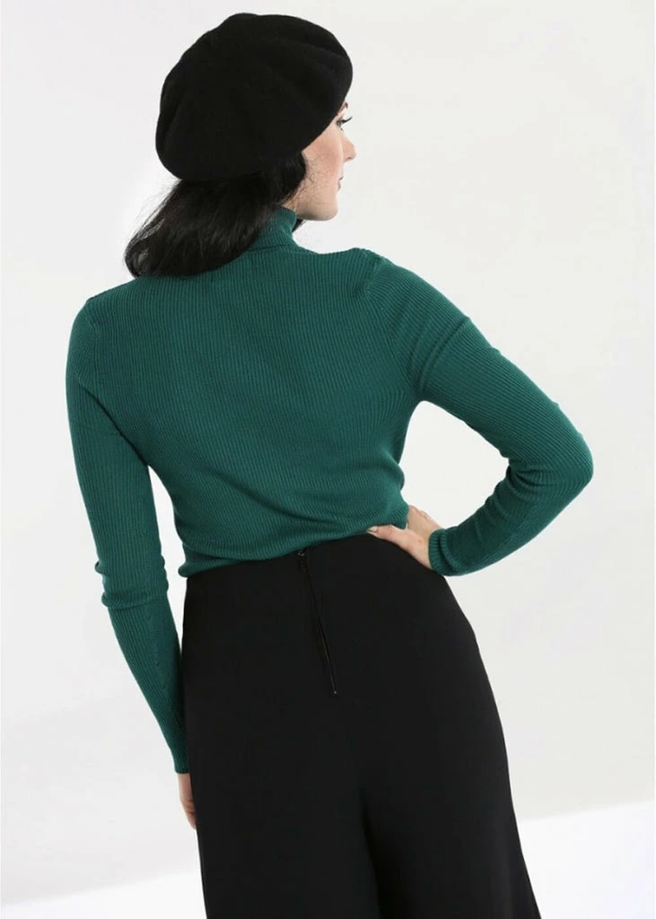 Her high neck and long sleeves keep you nice and warm, while the soft viscose-mix with stretch and rib structure feels lovely. Perfect, right?